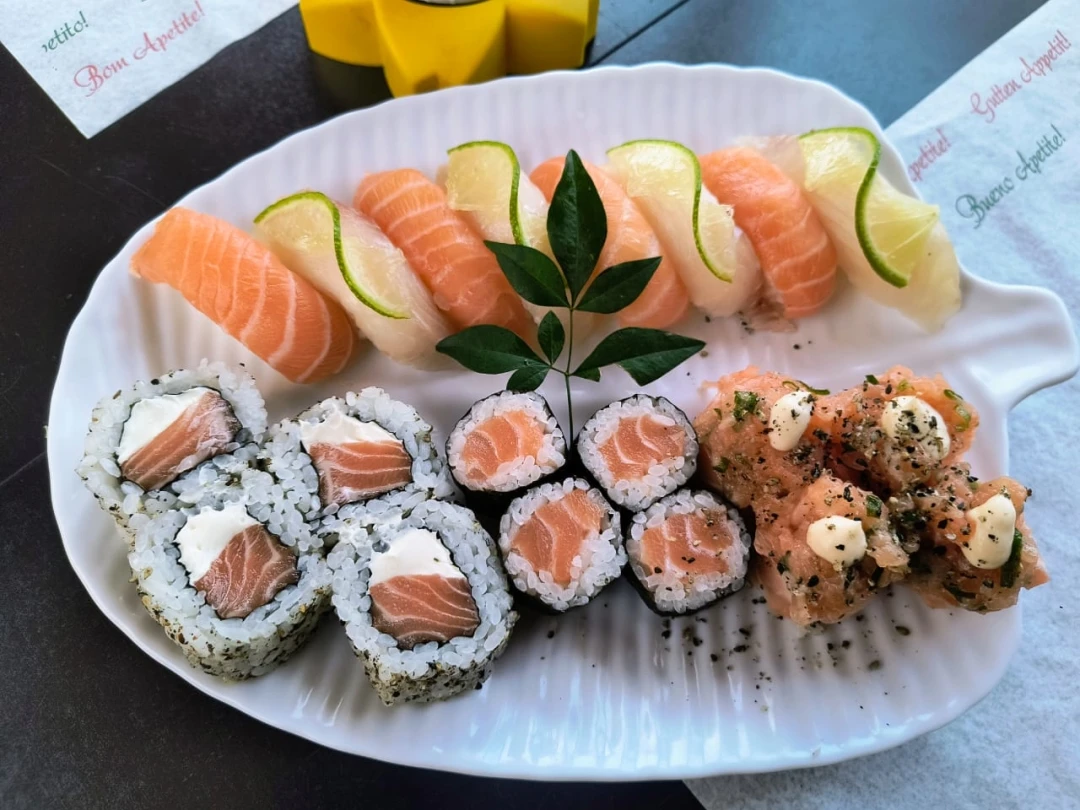 (NAO EFETUAMOS TROCAS DE SUSHIS) 10 Fatias de Salmão 4 Niguiri de Salmão 2 Jhow 8 Shake maki 8 Filadélfia